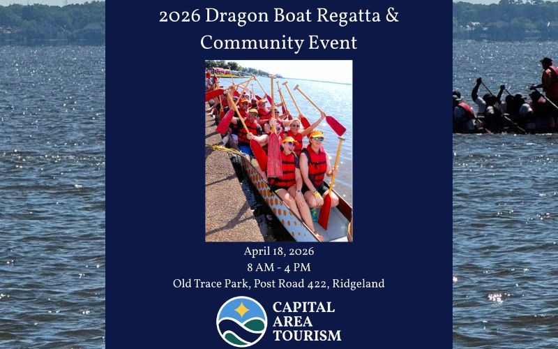 The 2026 Dragon Boat Regatta is scheduled for April 18th at Old Trace Park in Ridgeland! The event features teams in the dragon boats racing for the title. The free event for spectators includes food trucks and kids’ activities.