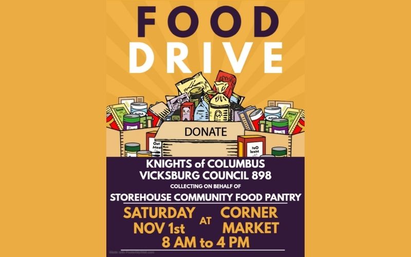 Knights Of Columbus, Vicksburg will be hosting a Storehouse Community Food Pantry Food Drive at Corner Market